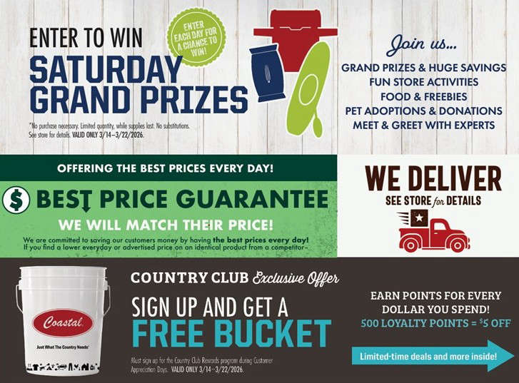 Coastal is showing appreciation for loyal customers like you with nine days of huge savings on spring necessities, plus grand prize giveaways, freebies, and more! Visit Coastal in Lacey this Saturday through March 22nd for special offers on your favorite brands. Customer Appreciation Days start at Coastal this Saturday!